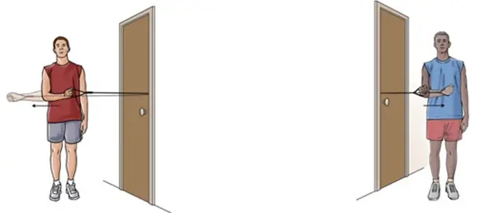 Following immobilisation the number one goal is to restore full range of motion. If range of motion isn’t restored initially it becomes even harder to get back. Range of motion is restored through repetitive stretches and/or movements often using a broomstick or pulley to help get that little bit of extra movement.