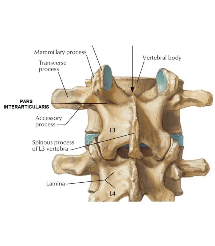 The bones of the spine (vertebrae) connect to each other with several small joints (facet joints). Each vertebra has 2 facets on the upper end, and another 2 facets that sit on the end of the bony processes (pars interarticularis) that extend down towards next vertebra below.